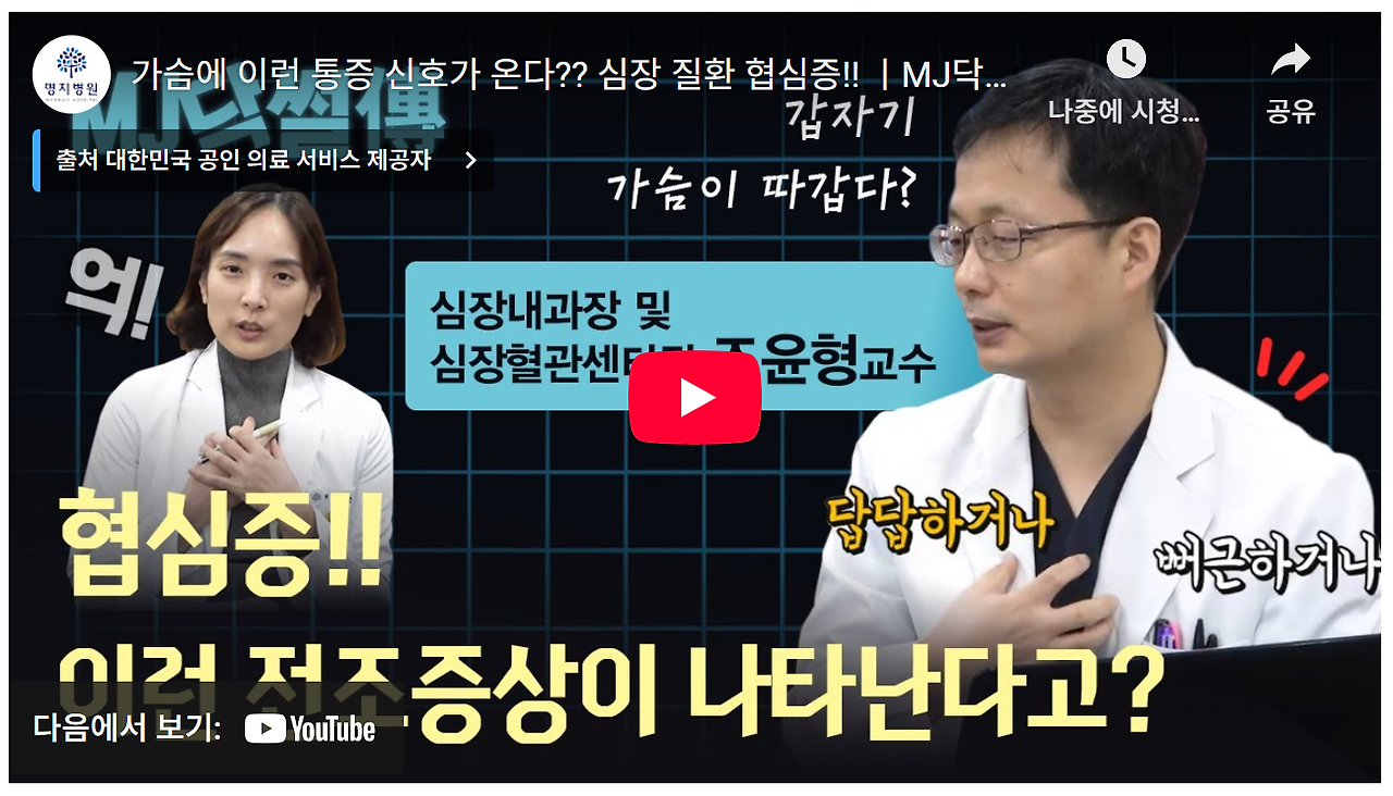 협심증은 일시적인 흉통으로 시작되지만 방치하면 심근경색, 돌연사로 이어질 수 있는 심각한 질환입니다. 그러나 다행히도 증상을 조기에 인지하고 적극적인 치료와 관리로 진행을 막을 수 있습니다.